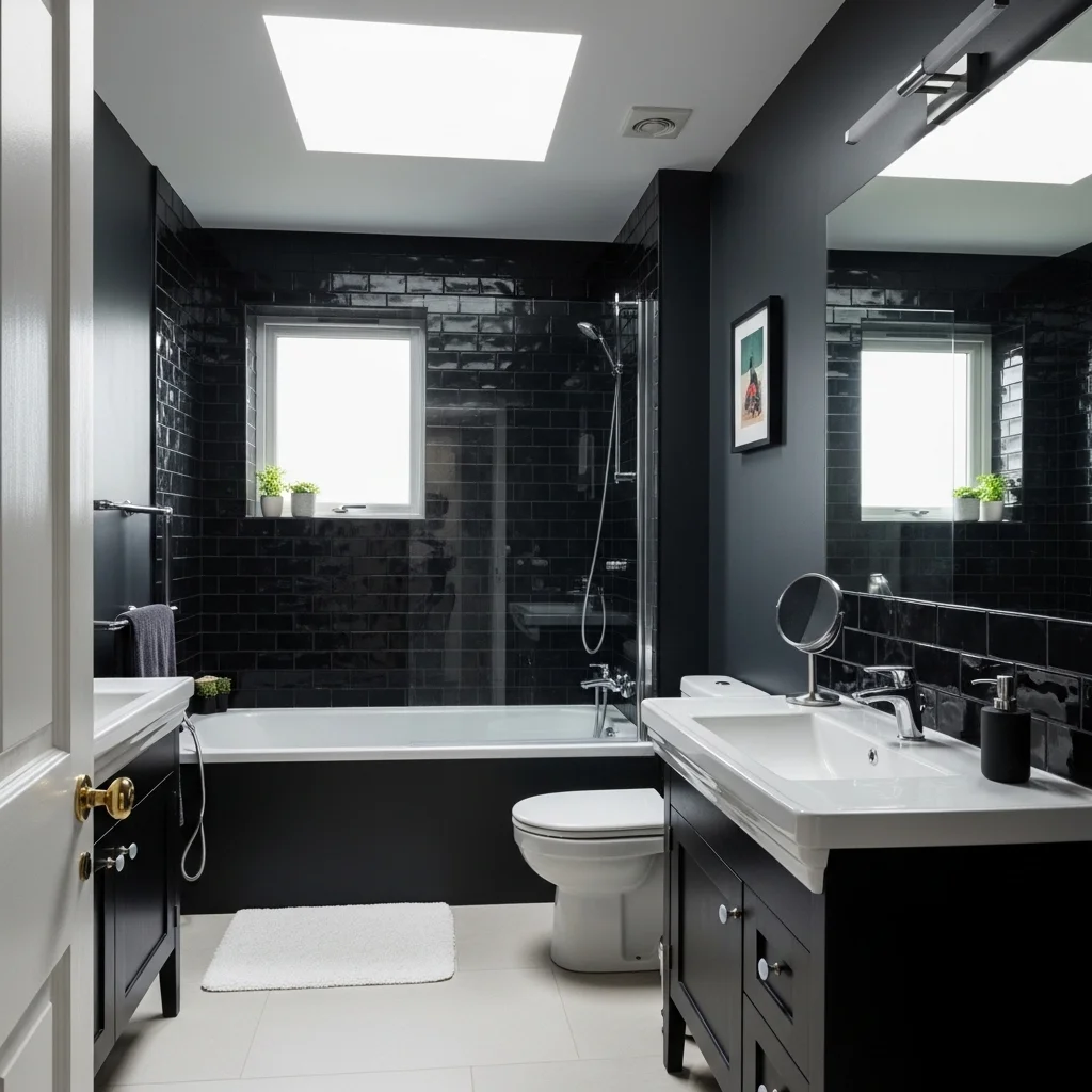 Instagram captures black bathrooms well. Living with one? That’s different. One of the bathrooms I was consulted on required matte black walls by the homeowner. We had it, but we have added a skylight, a huge mirror and white ceiling. It would have been tyrannical without those elements.