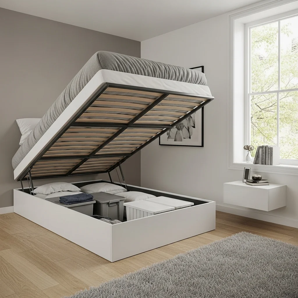 Lift-up beds in storage have emerged and are really becoming popular. I happened to observe a friend organize all of her winter clothes, additional bedding and seasonal decorations in the area under her bed in a studio apartment. Access to all things was easy thanks to the hydraulic lift. This can be compared to the ancient method of pushing plastic bins beneath a standard bed frame – there is no comparison.