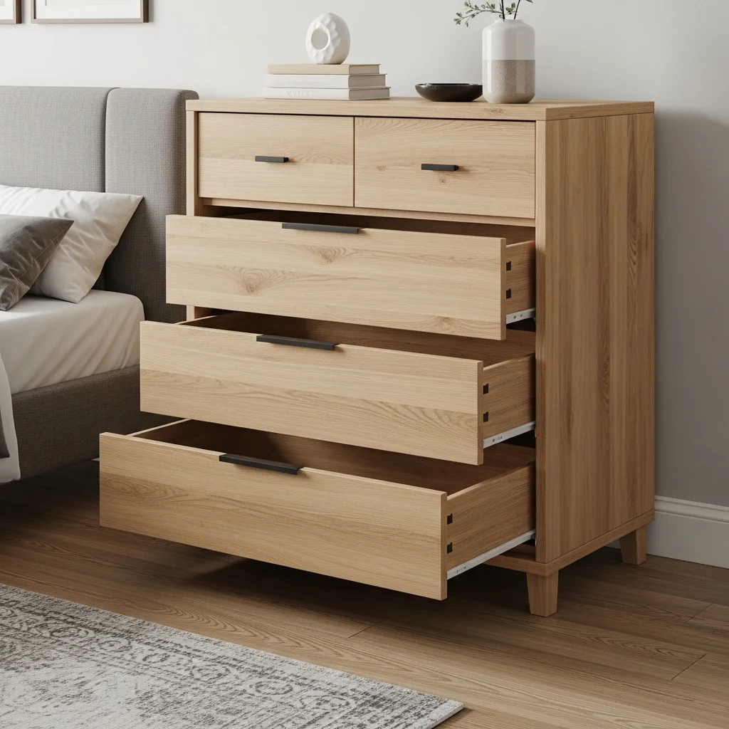 First, do not think about the price tag but look at building first. Drawers Opening drawers and test the glides, they must slide freely and be solid. Look at joints and corners. Drawers have dovetail joints which are a sign of quality craftsmanship. When it is all stapled and glued together, continue walking.